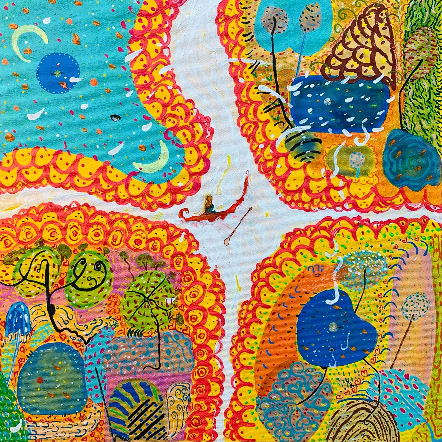 Kavanayén, navigating in the Orinoco river. 2025  Gouache on canvas 11 x 11 in 28 x 28 cm