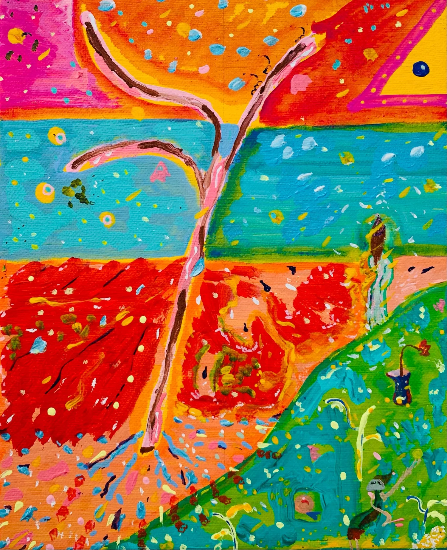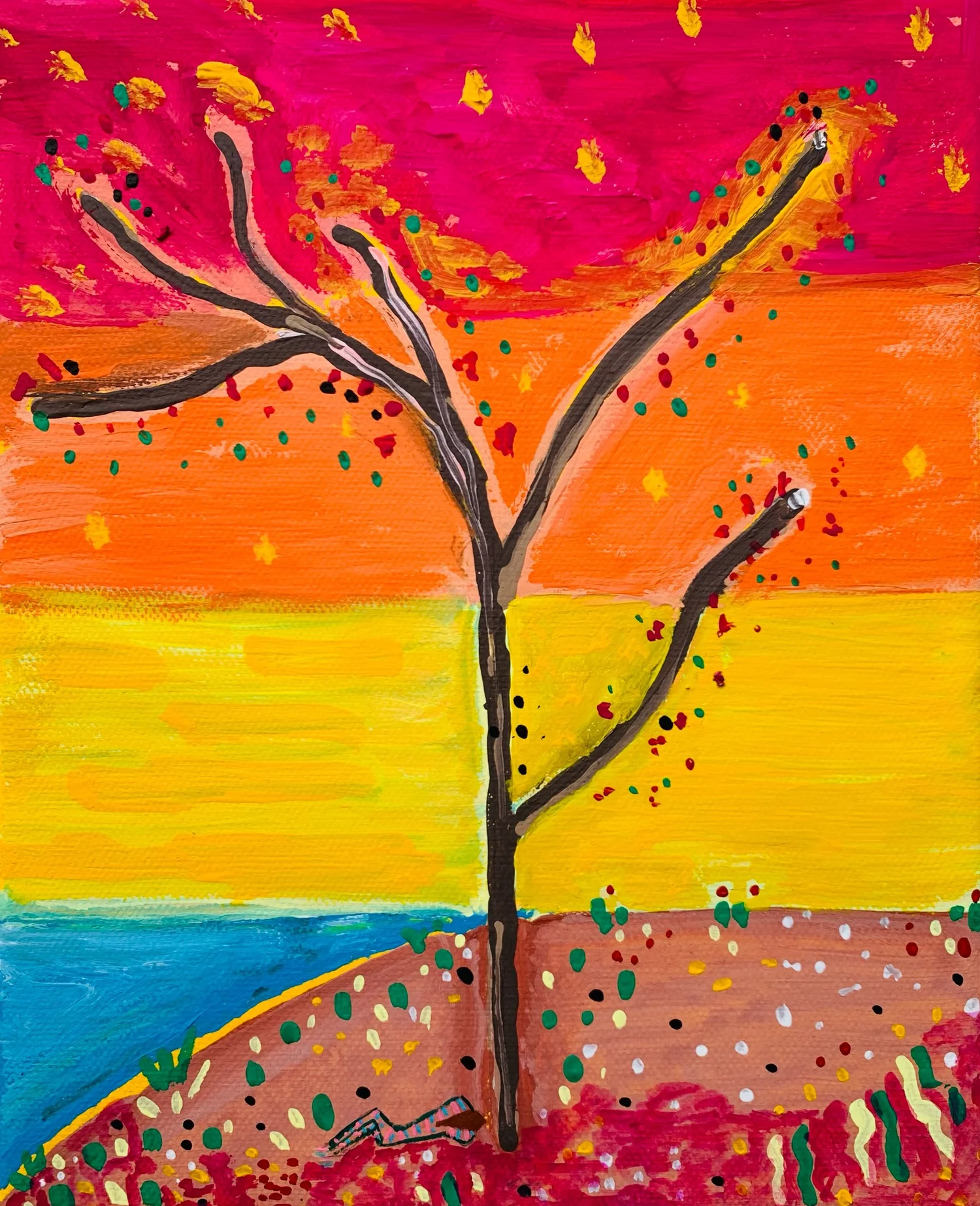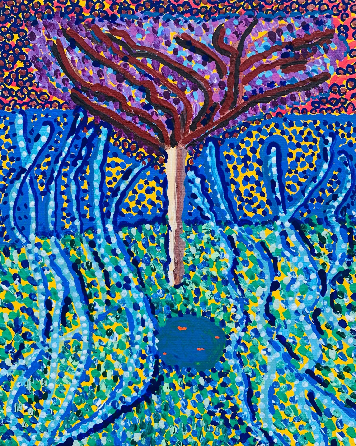Kavanayén, arbol, lago, peces, río Orinoco. 2025  Gouache on canvas 8 × 10 in 20 × 25 cm