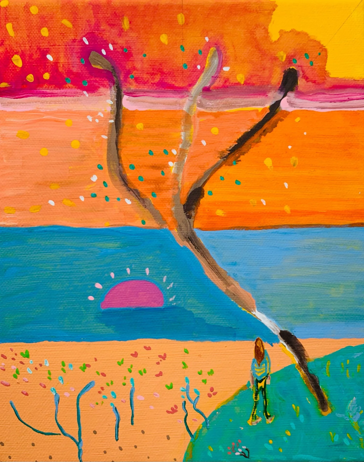 Kavanayén, sunset, río Orinoco. 2025  Gouache on canvas 8 × 10 in 20 × 25 cm