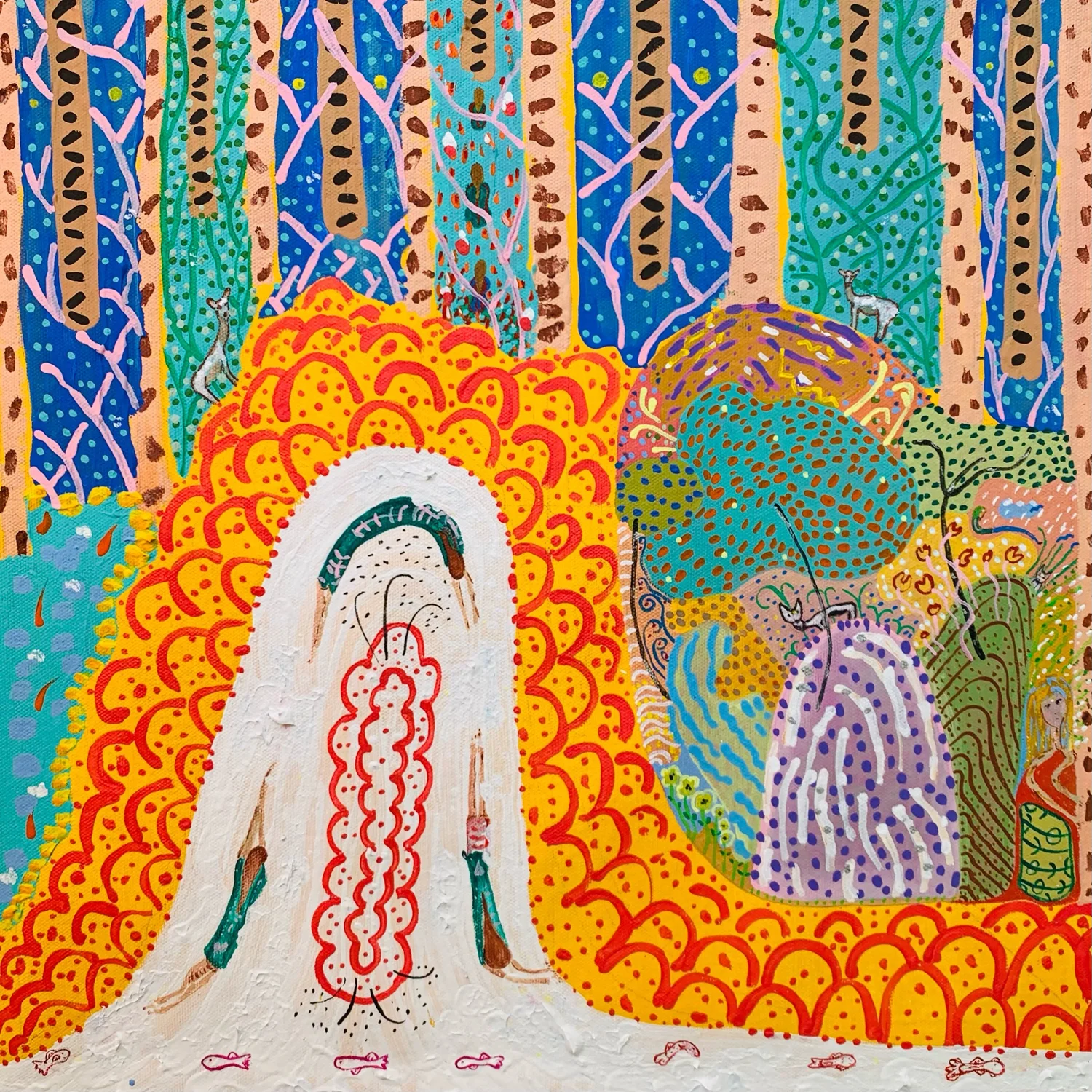 Kavanayén, mujeres entrelazadas río Orinoco. 2025  Gouache on canvas 8 × 8 in 20 x 20 cm