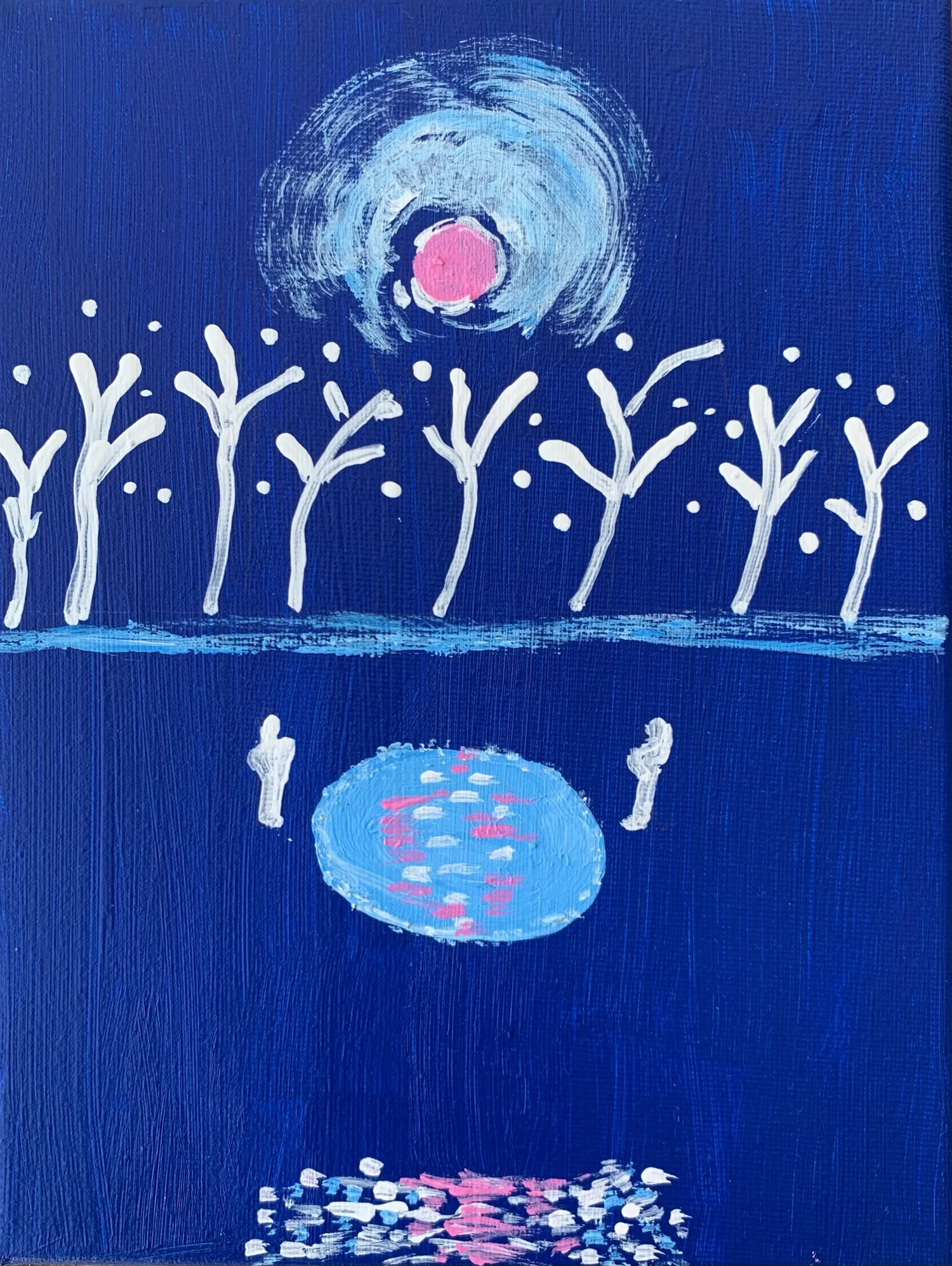 Kavanayén, observatorio astral río Orinoco. 2025  Gouache on canvas 8.5 × 8.5 in 21 × 21 cm