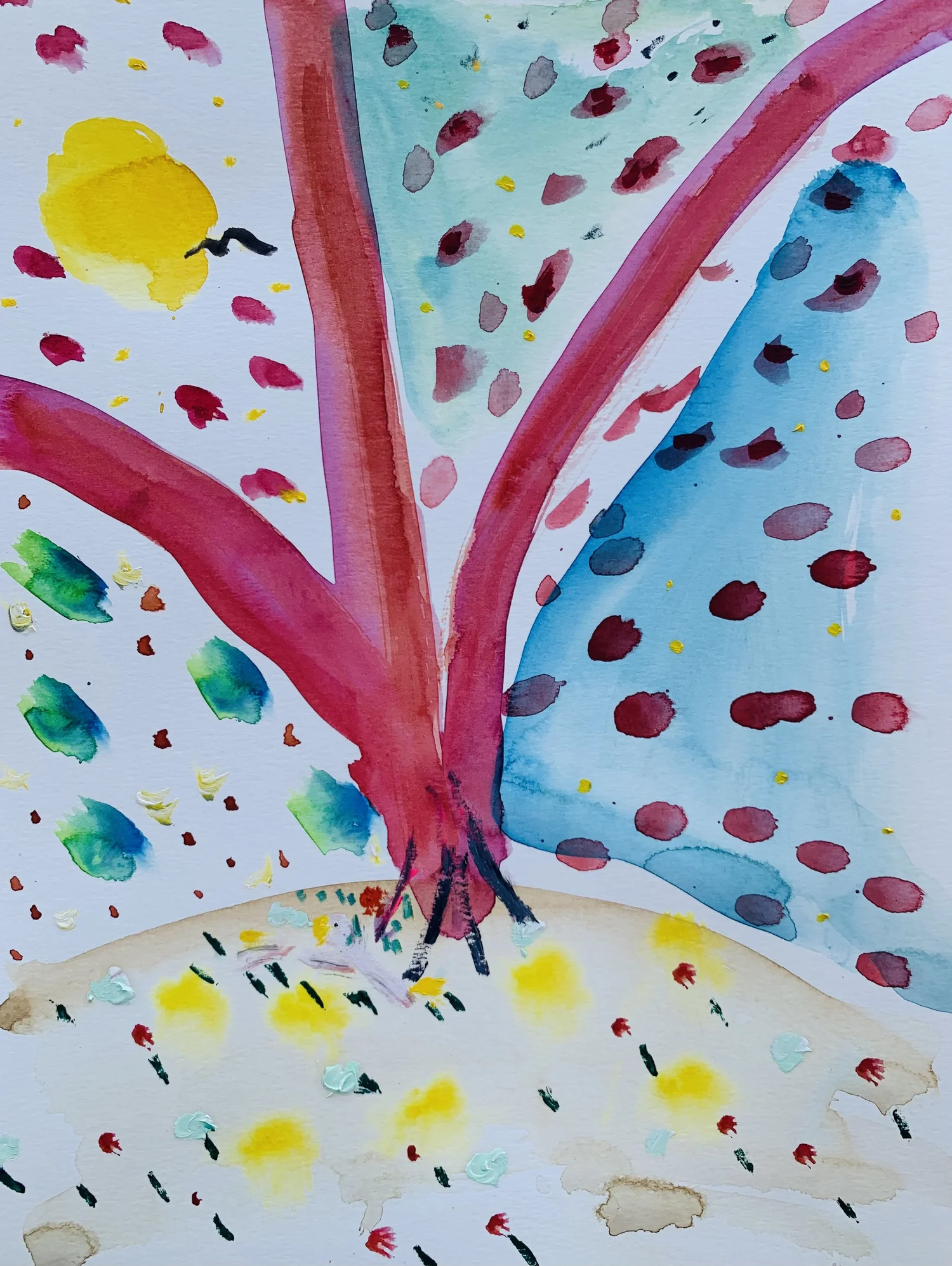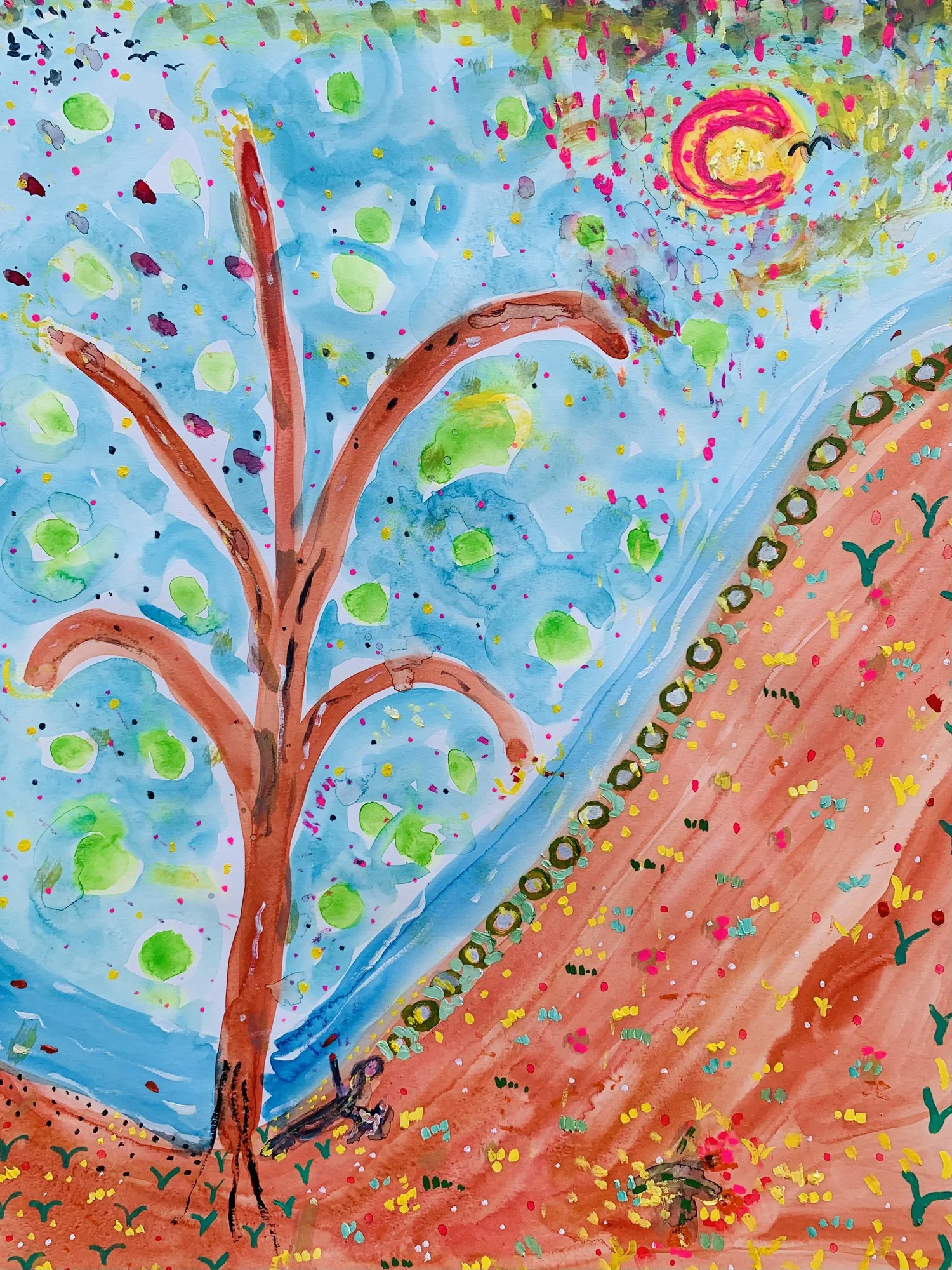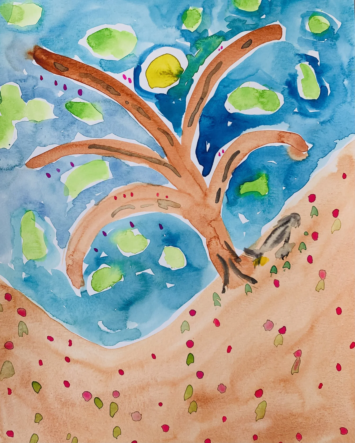 Kavanayén, el árbolito. 2025  Water color and oil on paper 9 x 12 in 22.9 x 30.5 cm