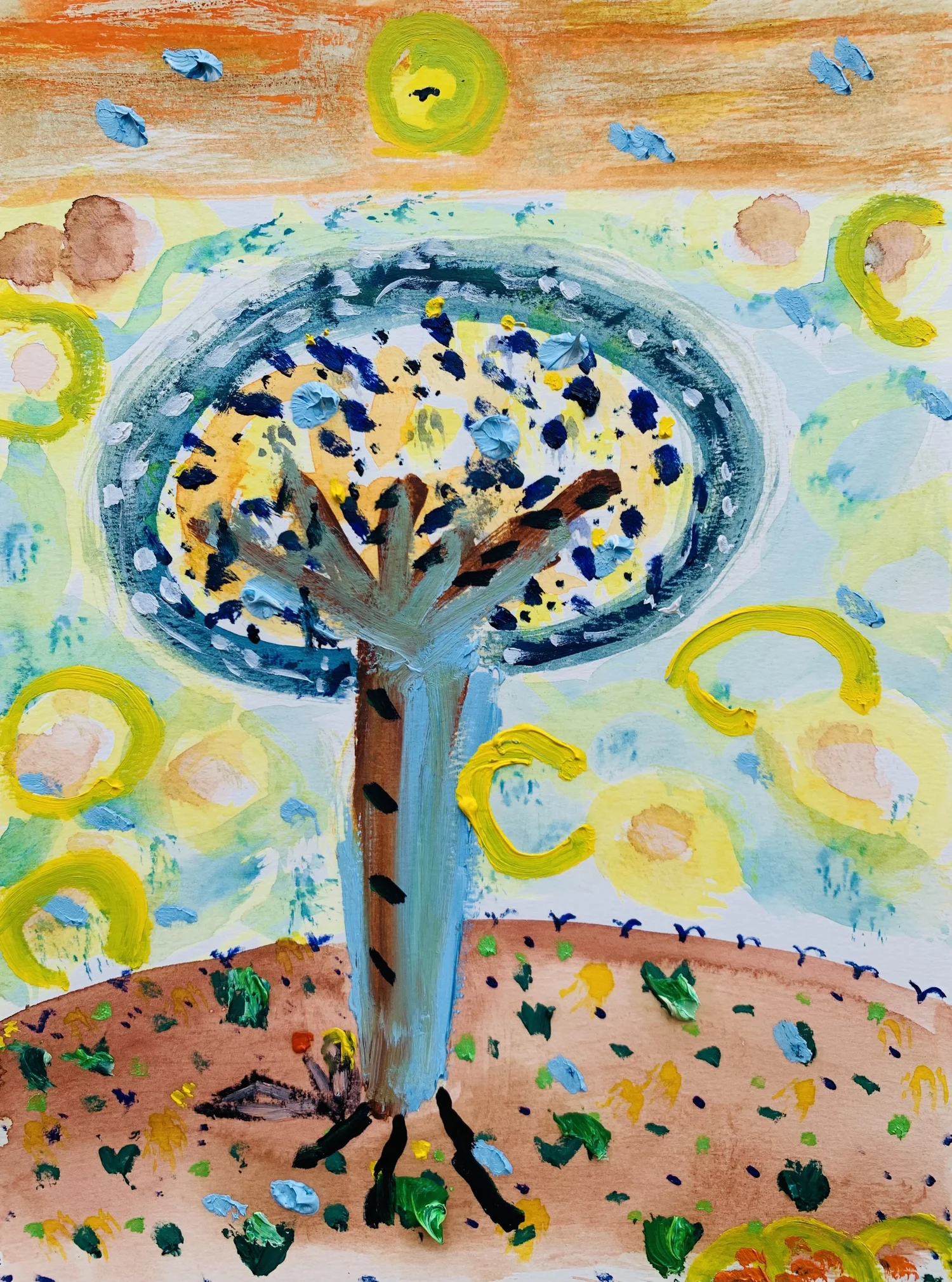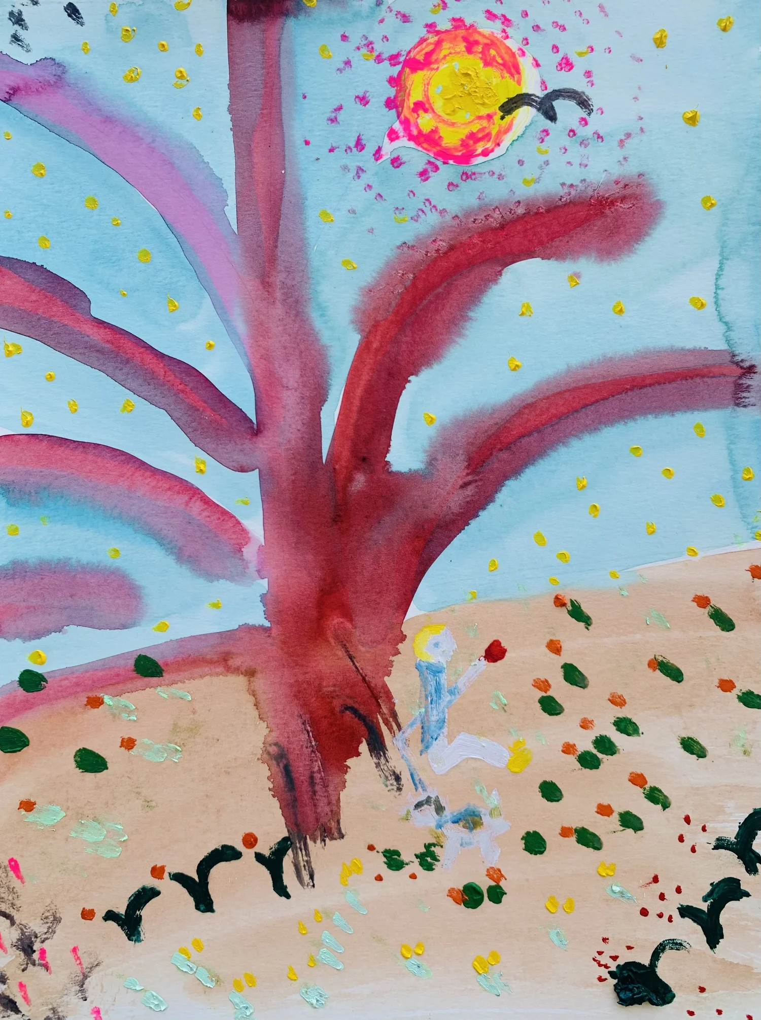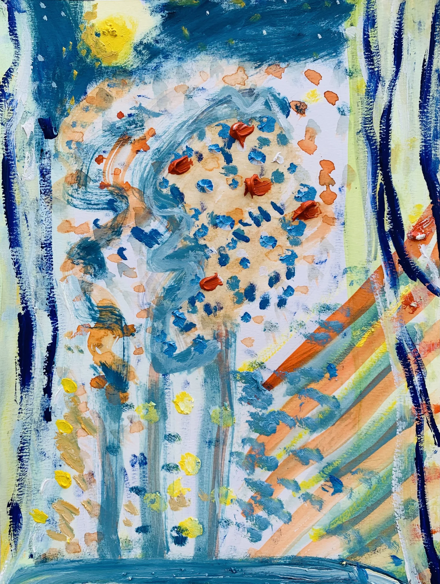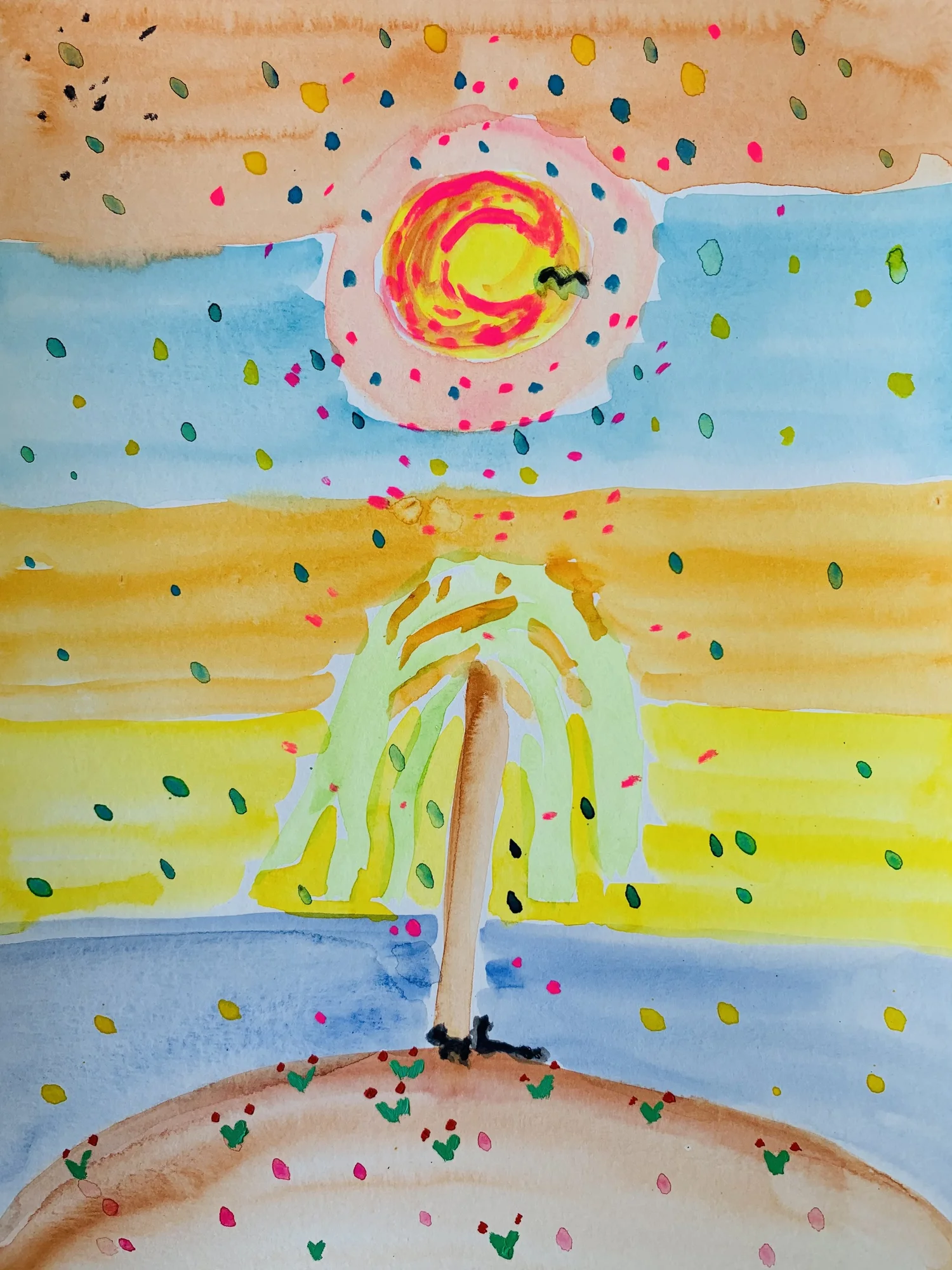 Kavanayén, el árbolito. 2025  Water color and oil on paper 9 x 12 in 22.9 x 30.5 cm