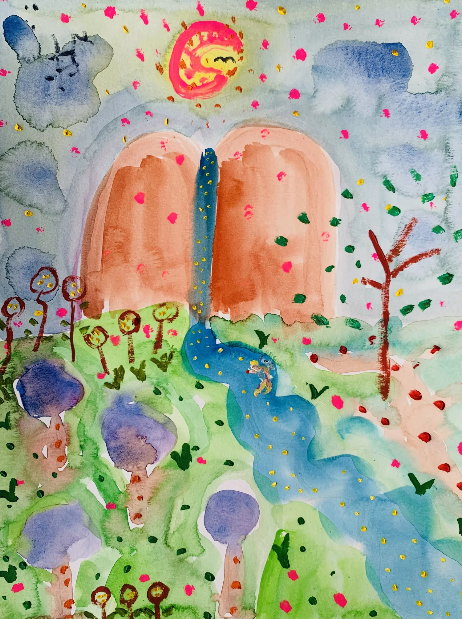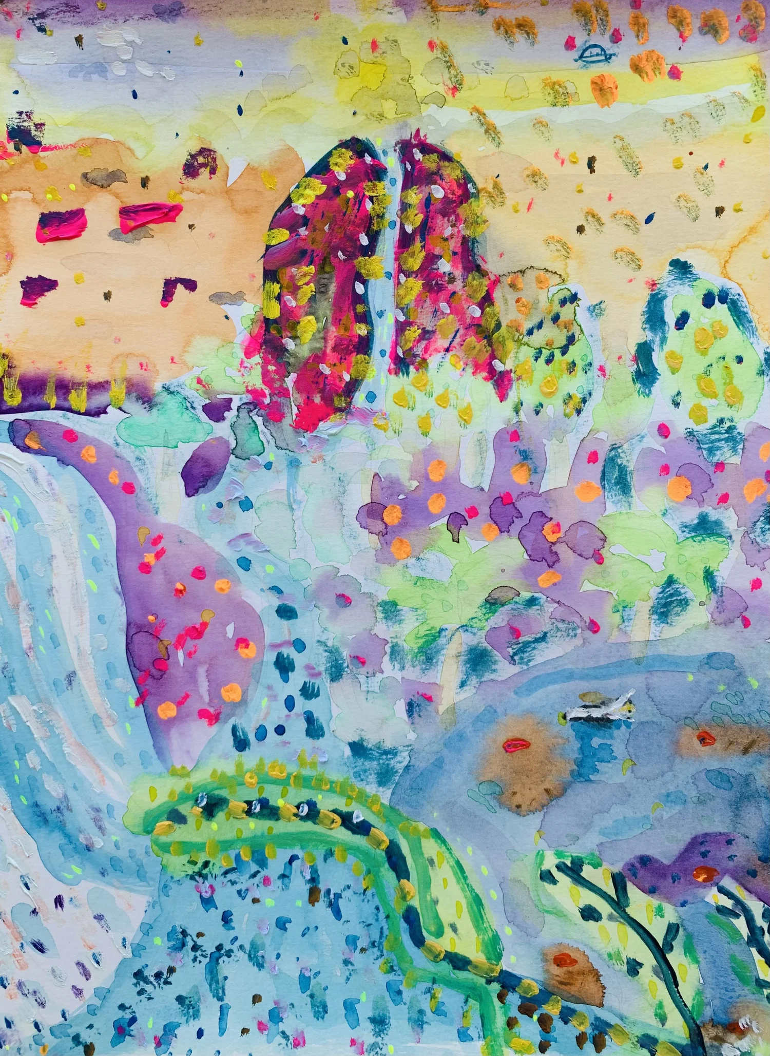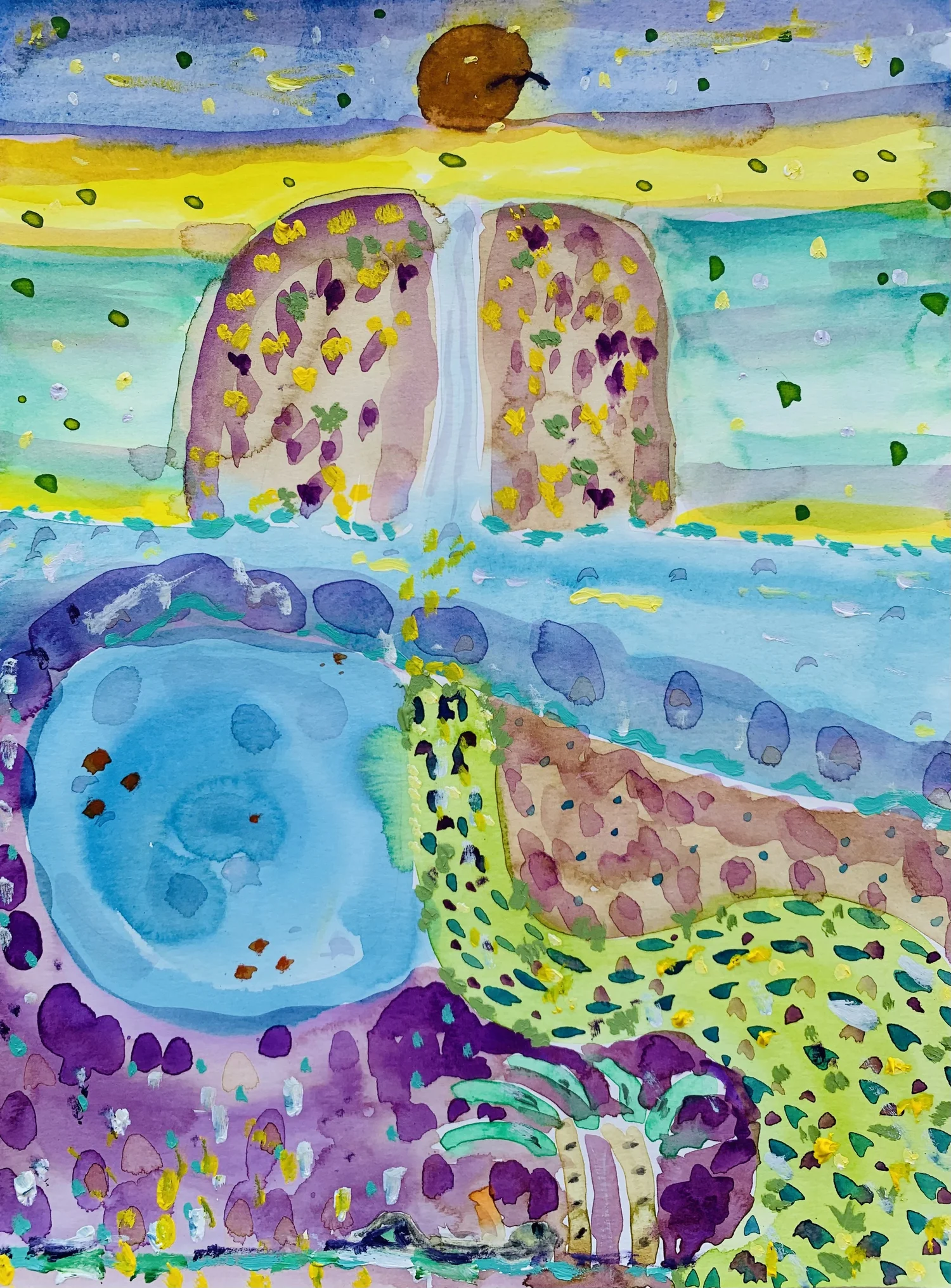 Kavanayén, Salto Ángel in a dream, 2025  Water color and oil on paper 9 x 12 in 22.9 x 30.5 cm