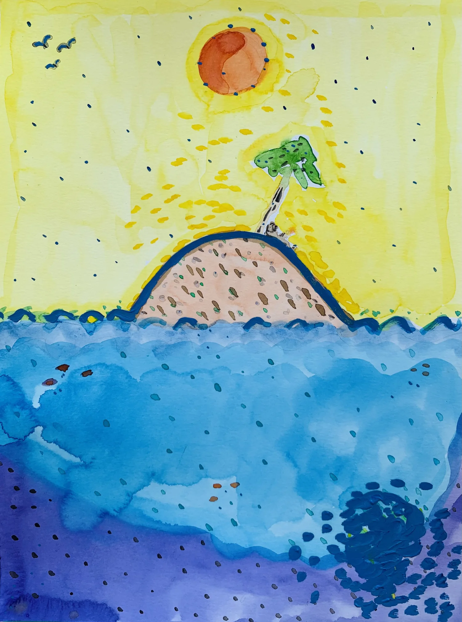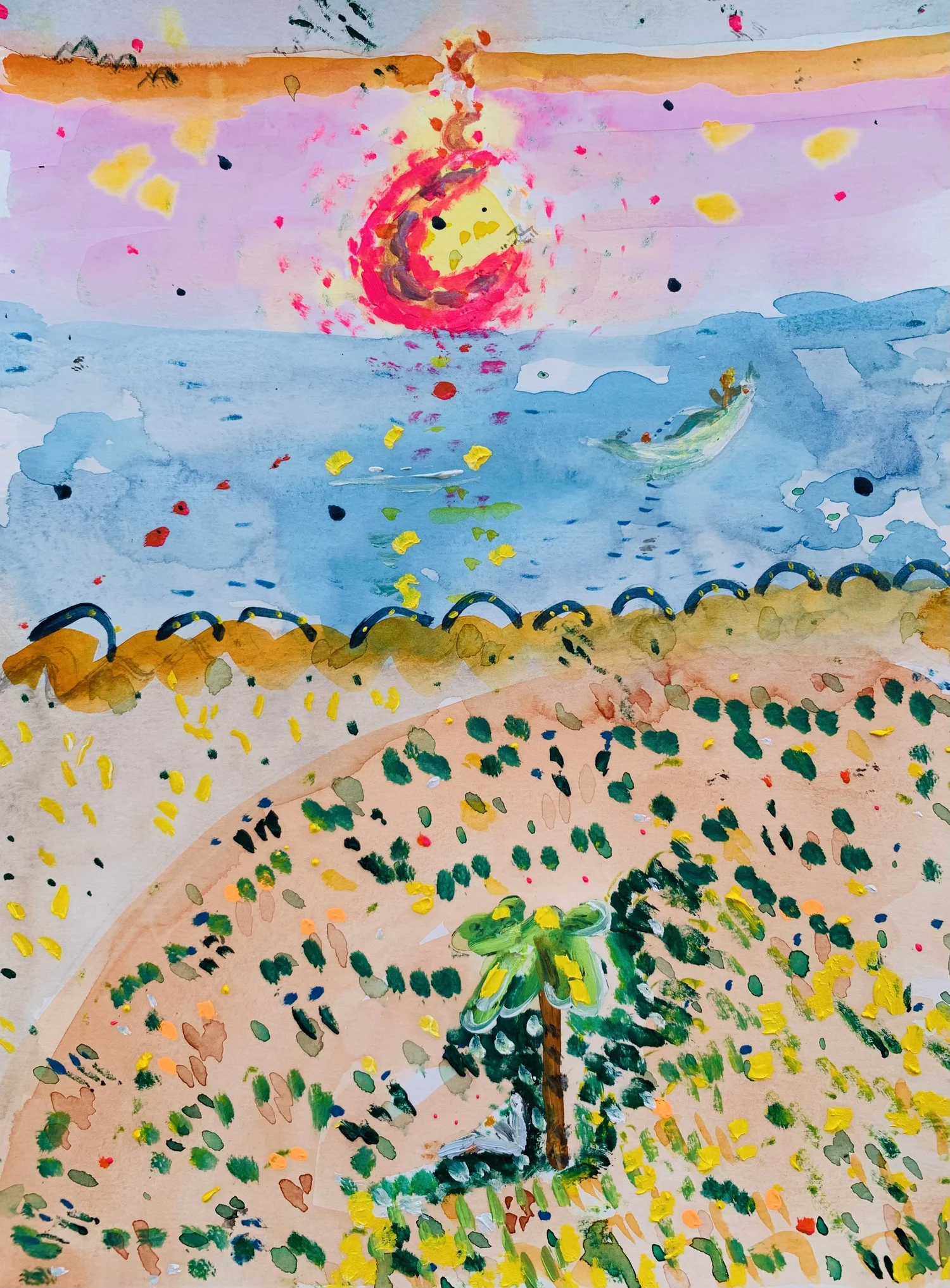 Kavanayén, Cayo Muerto playita viva. 2025  Water color and oil on paper 9 x 12 in 22.9 x 30.5 cm