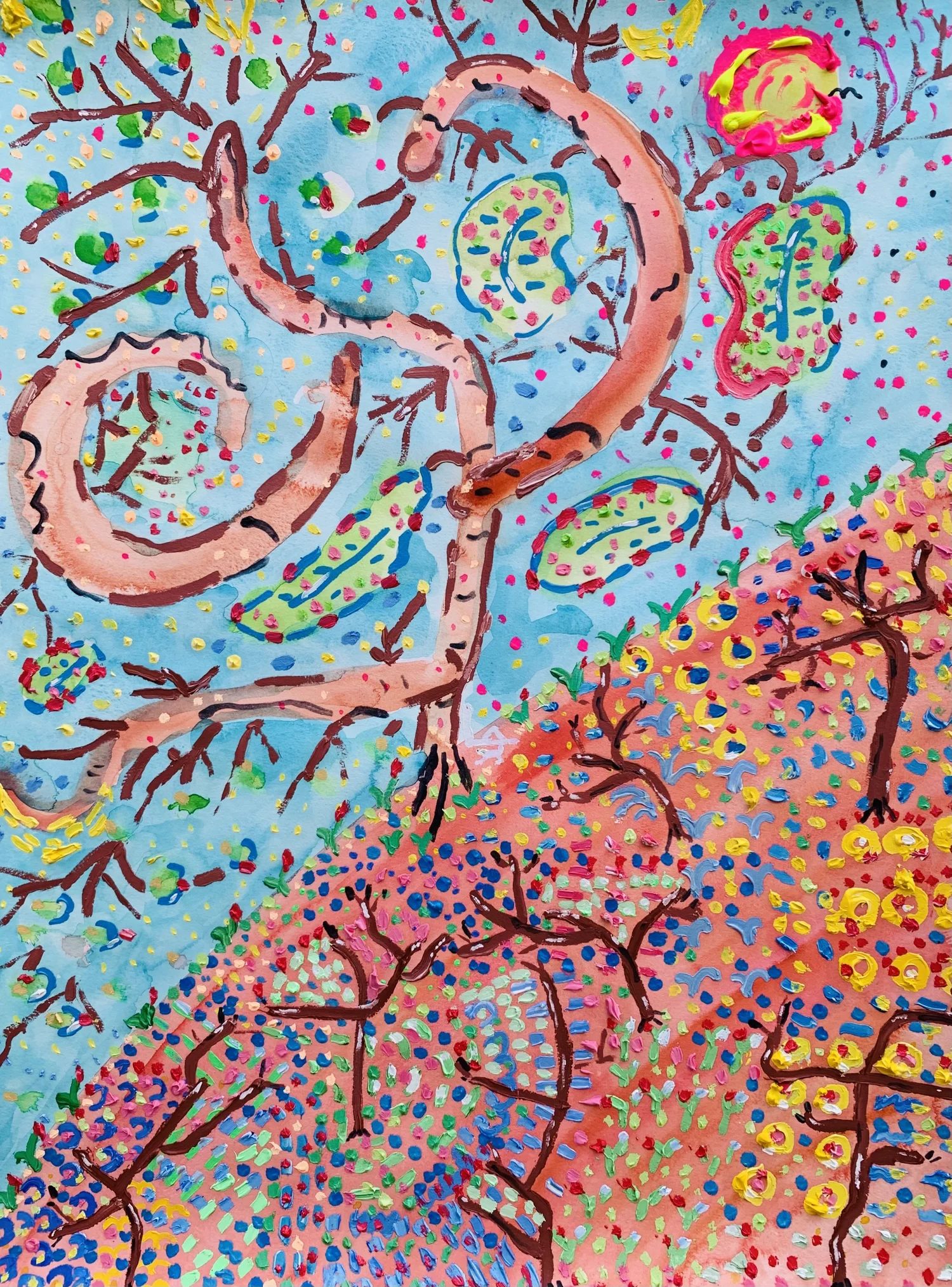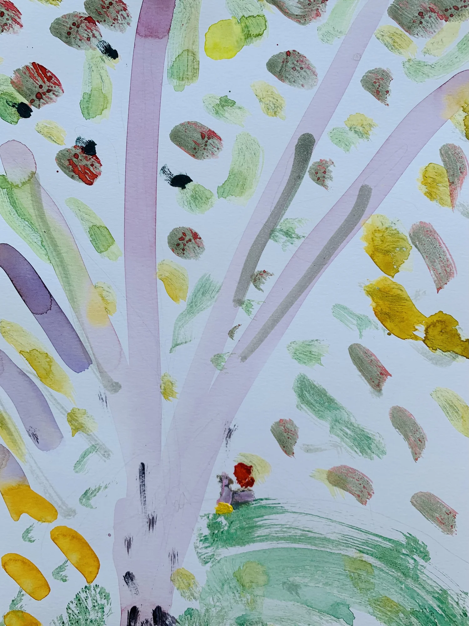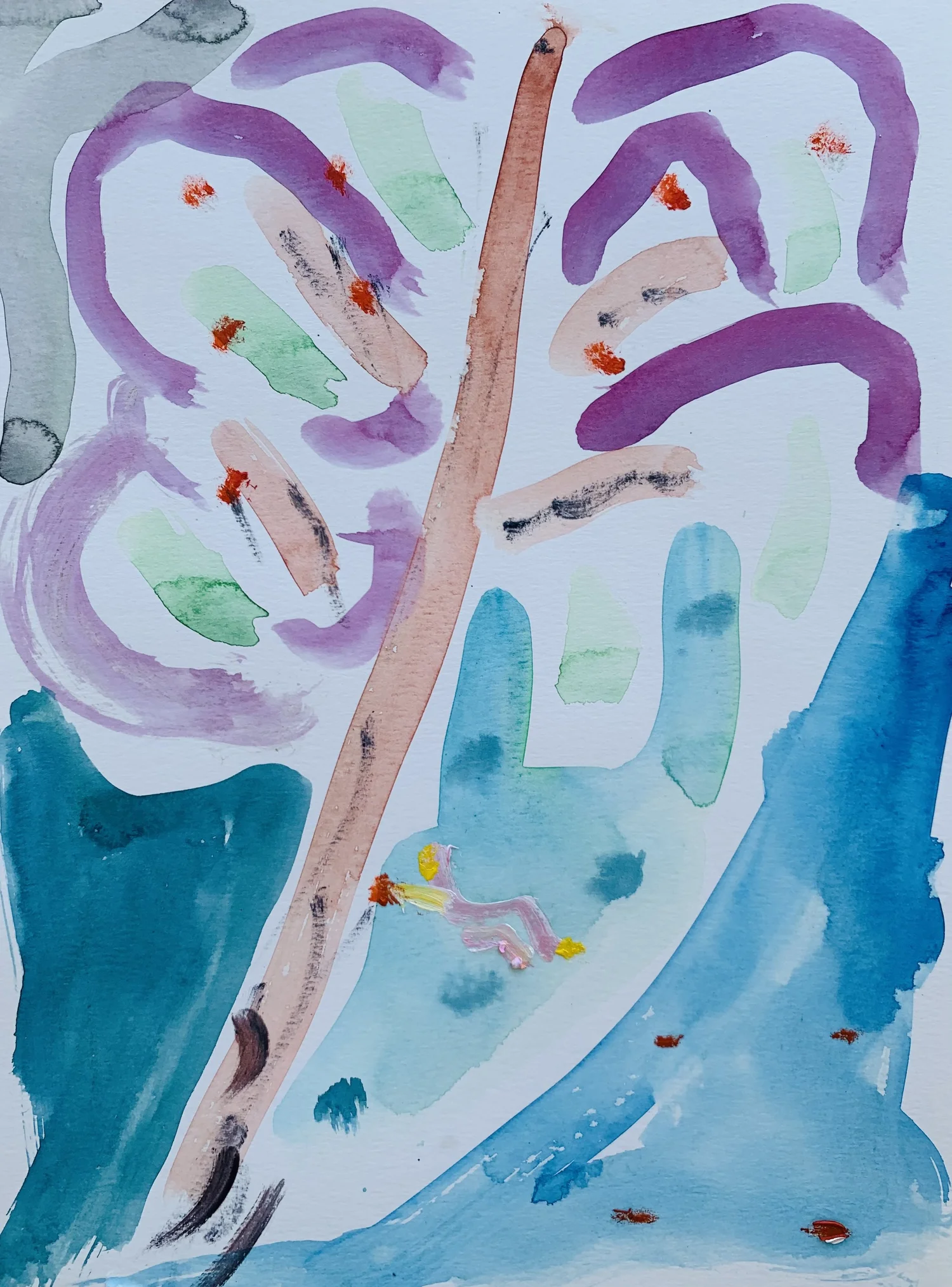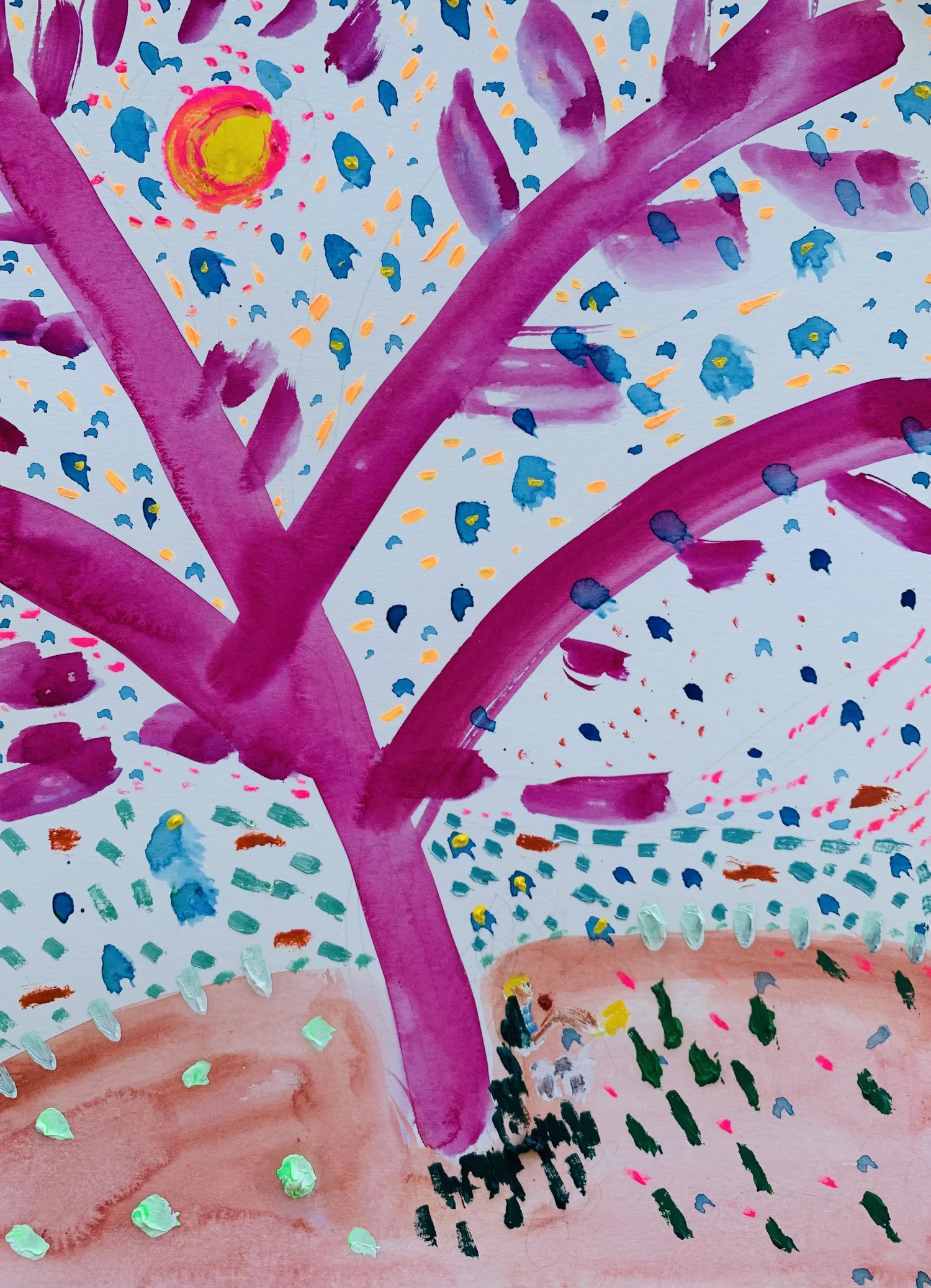 Kavanayén, árbol violeta. 2025  Water color and oil on paper 9 x 12 in 22.9 x 30.5 cm