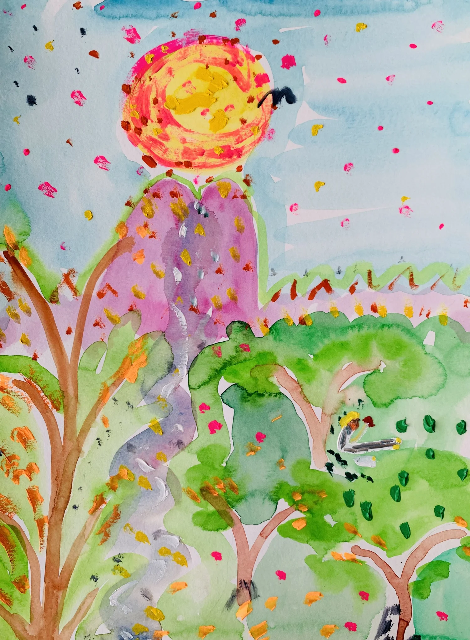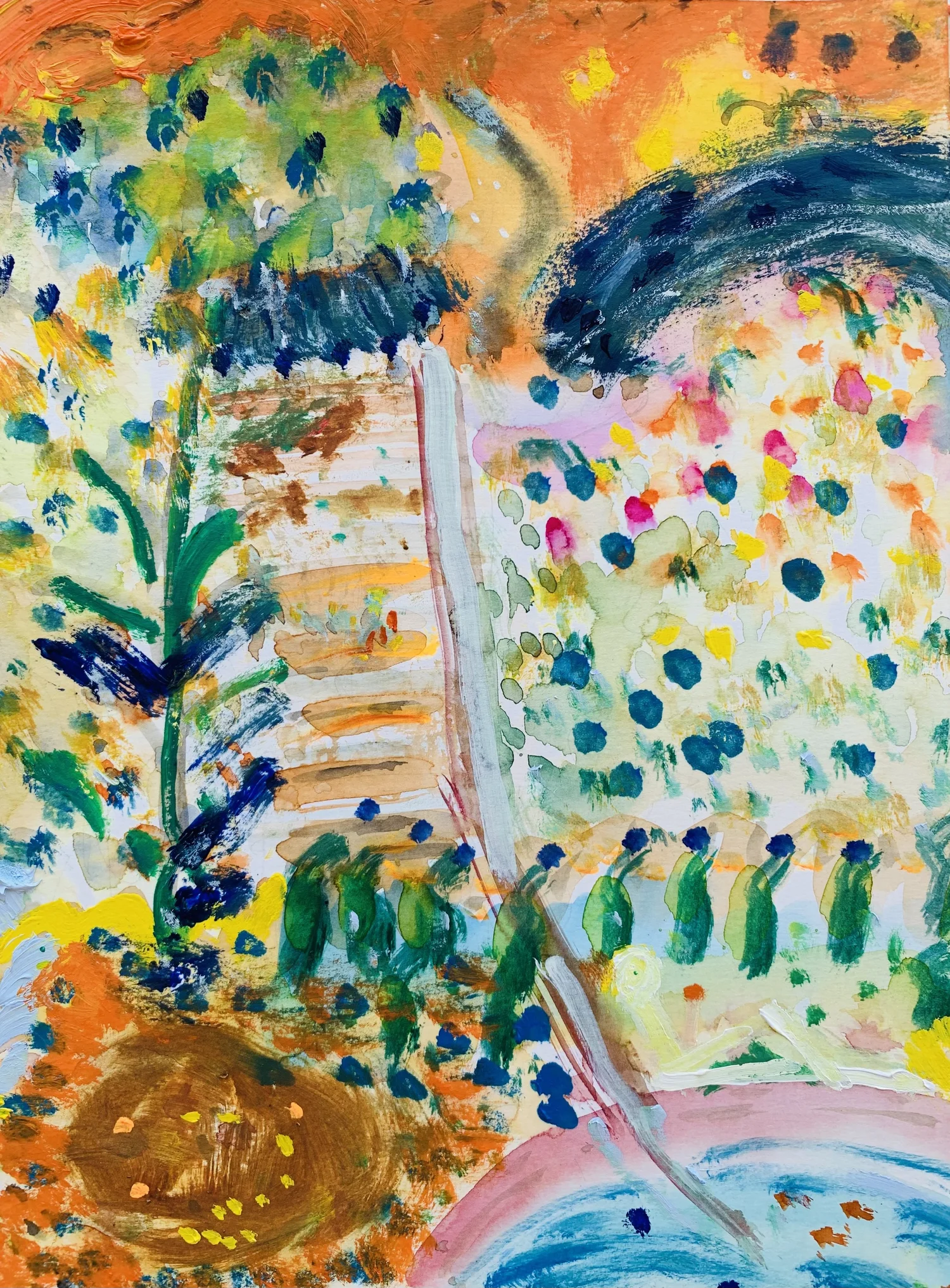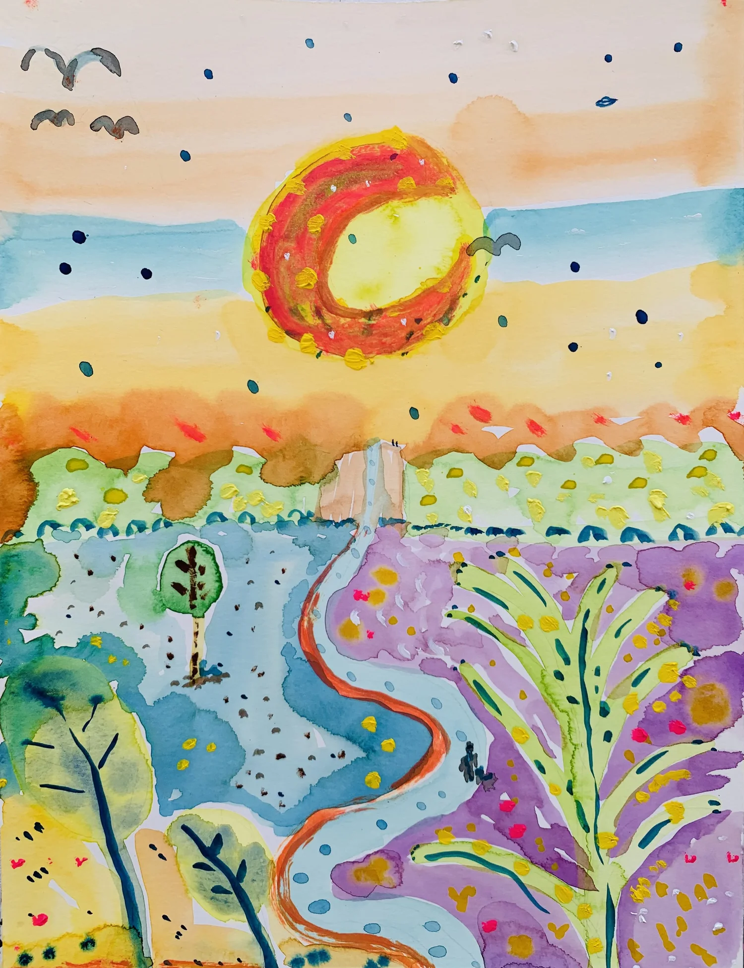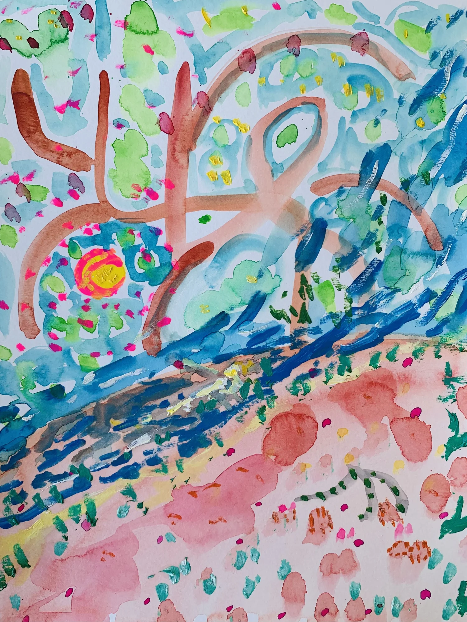 Kavanayén, árbol violeta. 2025  Water color and oil on paper 9 x 12 in 22.9 x 30.5 cm