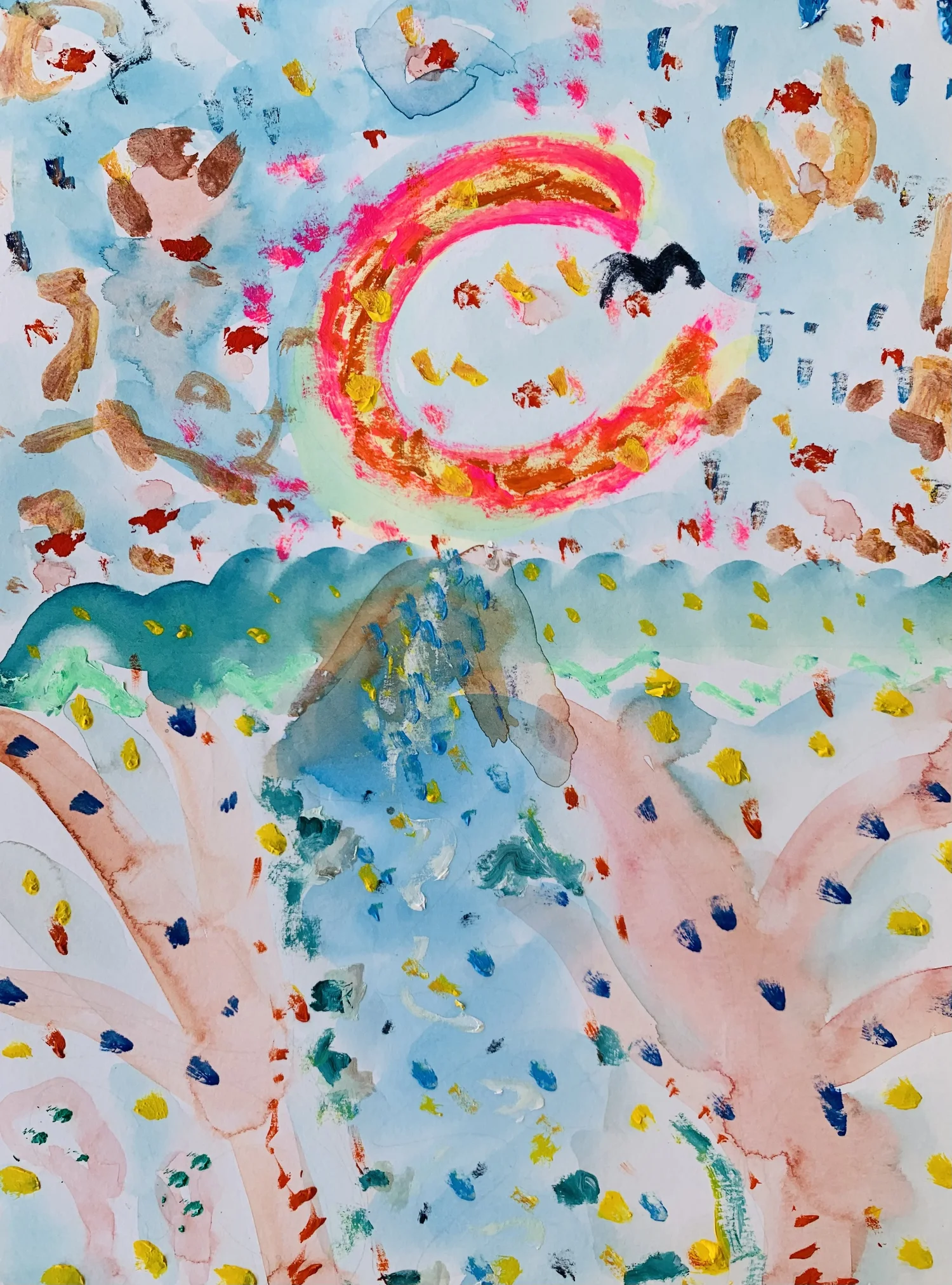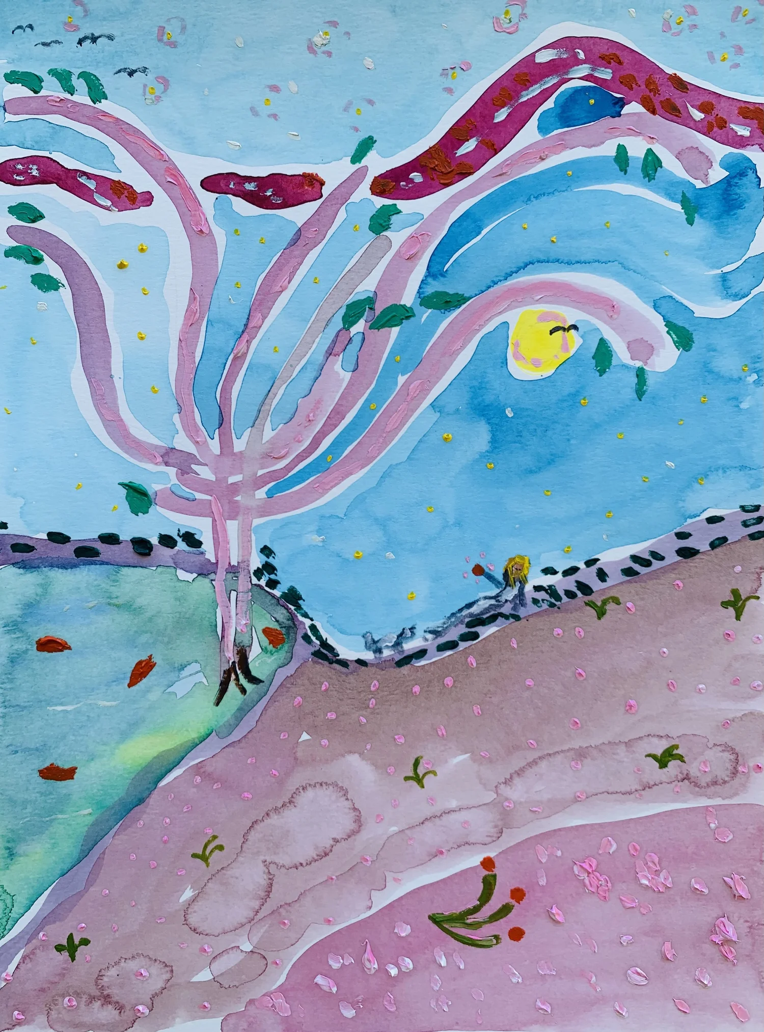 Kavanayén, árbol florido. 2025  Water color and oil on paper 9 x 12 in 22.9 x 30.5 cm