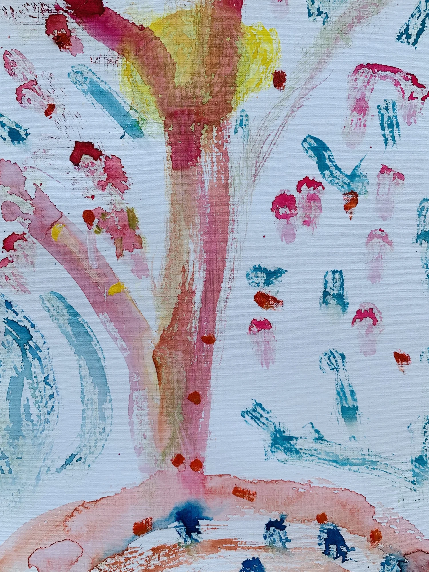 Kavanayén, árbol de rosa. 2025  Water color and oil on paper 9 x 12 in 22.9 x 30.5 cm
